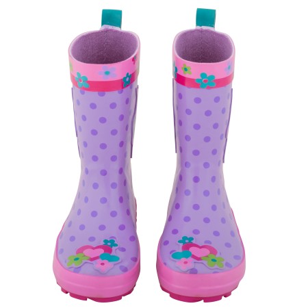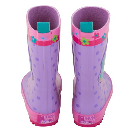 Otroški škornji zabavnih modelov omogočajo malčkom veselo in brezbrižno skakanje po lužicah. Zunanjost je vodo odporna saj je narejena iz 100% naravne gume in jo krasijo razigrane Stephen Joseph maskotice.